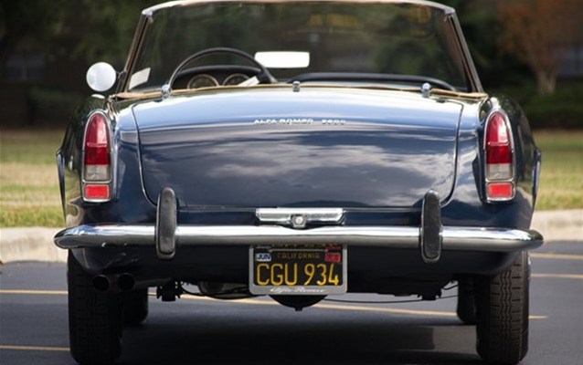 This US spec. 2600 Spider Touring shows a very nice paint tone (for once not the usual Alfa red) and a CA black plate. It also has the period correct Michelin X radials while the engine is fitted with a Weber threesome carburetors assembly, instead of the original Solexes (which come with the car along with the original air filter assembly)
