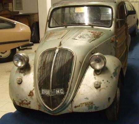 Some sources say that less than twenty Fiat 500 B Giardiniera are still around. This car, although in need of a total restoration, seems a very good candidate for the job. The cracks in the silver paint show the green paint which could be the original tone.