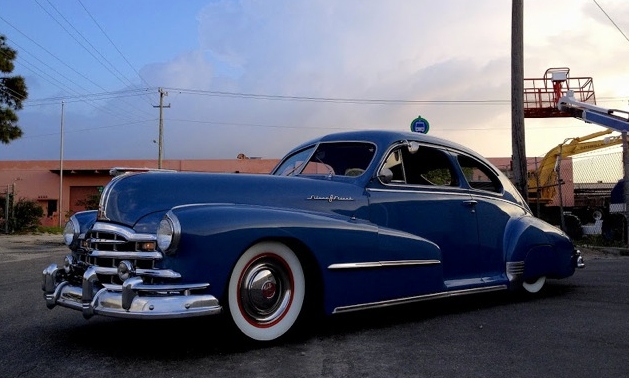 The bigger, the better: this is what’s befittingly to this car. This car features a magnificent streamline design and a color which perfectly matches all those curves. This car is much more cute in this two door version as the tail is perfectly joined with the roof line and then softly slopes towards the rear bumper. This car is moved by a straight-8, 250 cubic inches engine through an Hydramatic transmission (starting from 1948).