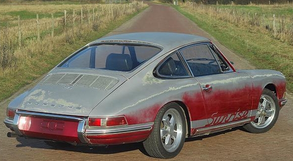 This ’65 Porsche 912 has been chosen not beacause of its extraordinary conditions but for its odd paint job which, in the mind of the former owner (or painter) should have reminded a sunrise. Giving an evaluation of the final outcome is up to you: however, it’s a real head turner. Also the “Sunrise” writing is well done, using a stencil with the correct Porsche fonts used for “Carrera” on later cars. Rims are nice but we would have seen period tires fitted on them.