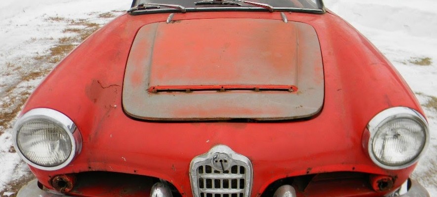 A lot of care indeed, as the car needs a complete restoration: a lot of rust everywhere but still it has the shape of a car: the engine is disassembled but the seller says that it’s the original one: by the way this is one of the last Giulia Spider so it has a five speed gearbox and front disc brakes. The seller has posted a lot of photos on Picasa so enjoy the slideshow here. If you are interested, find it for sale at £21,900 (today $33,700) here in Uxbridge, MA.