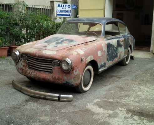 What we have here is a coupè built by Vignale in his earliest times, based on a Fiat 1400. We knew immediately that this is a car made by Vignale as the front grill looks like the one installed on the magnificent Abarth 205A, designed by Michelotti as well. We’ve never seen one for real, so this could actually be the only surviving car of that series called “Orchidea” (Orchid). The car looks complete, especially the interior looks like daddy Vignale made it: we wonder since when this car has been hidden in some garage of Rome: the car has still the original black Roma plate. As just said, everything is in its place so this is a great basis for a sympathetic restoration job without any compromise, and remember that it has an aluminium body. Are you ready for this challenge? If yes, find it for sale here in Roma, Italy, at $45,000.