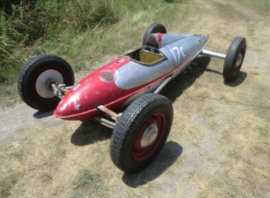 The Bonneville salt lake was the temple (still is, actually) for these speed records attempts but unfortunately this particular machine never raced there: actually it never raced at all as it is a (very nice) mockup: it rolls and steers (thanks to the front ’40s Plymouth steering assembly), it has a proper dashboard with some aircraft instruments and cloche so if you’re crazy enough to “complete” this machine you won’t be disappointed. Find it for sale here in Key West, FL, with bidding at $4,000 and no reserve.