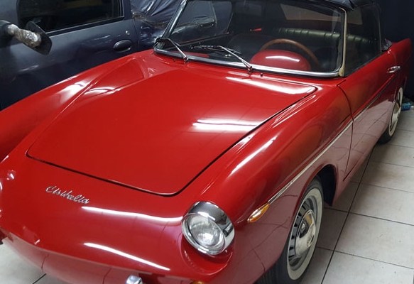 As it often happens the seller says nothing about this car but that is completely restored, including its original engine. We actually see that the car looks good in a striking blood red paint but we would have wanted also to see some photos of the interiors and the engine bay. The nose seems to lack of some trims (which you will never find) as well as the soft top which should have a chrome trim around the window edge but, at last, it seems well worth the price. Find it for sale at €24,000 (today $27,000) here near Mendoza, Argentina.