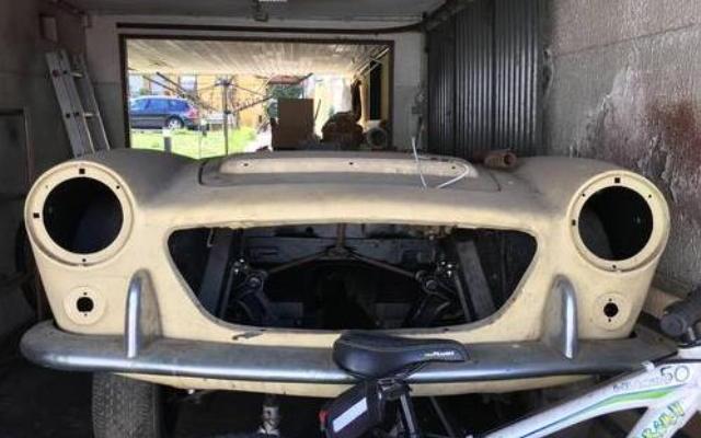 The smiling face is, of course, the nose of this 1500S without headlights, front grill and bumper. And that’s because the car is in the early stage of a deep restoration.