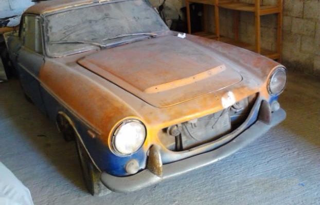 The car is covered with dust so ot could also have been stored in a garage or barn but wherever it was, it is a car which needs a full restoration but, at the same time, looks dry and, as the seller says, it’s complete, including the front grille.