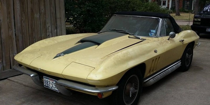 This ’66 Corvette Roadster is actually painted in a not original color, on the other side interiors are basically untouched,showing a beautiful green shade.