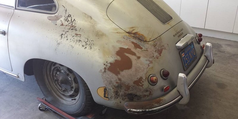 This 356 T1 Coupé is a very nice survivor which has been close to death: it survived to a garage fire which has leaved its mark over the body: it could be worse, much worse than that.