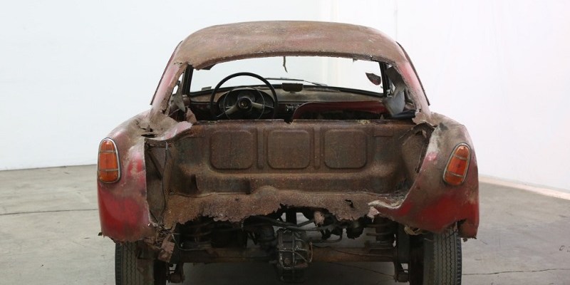 The rear end is almost completely missing, as well as the lower sills and certainly the floors: the precious aluminum bumpers are missing, yet the car retains some of its best known features: the door panels are original as well as the perspex windows , the dashboard, and the gear lever on the floor. Also the Perspex rear window is gone as well as the “gold-made” Weber DCO3 carburetors but the engine block is still there: we bet it’s the original one. Find it for sale at $89,500 here in Los Angeles, CA.