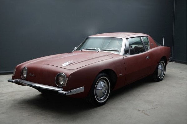 The puzzled look you see in the photo is that of the nose of a Studebaker Avanti R2, the most powerful version of this family of American cars.