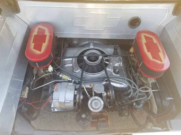 In the specific case of this first series Corvair, the chassis has been shortened (and not just a little, by the way) and this required the adaptation of the soft top which, however, seems to fit well with the new dimensions of the car. The painting is in two tone of which one, the sand color, is also sato for the interior where there are the stitched figure of Taz, the character of Warner Bros Looney Tunes. The front and rear wheels are custom and of different diameters, the license plate is customized and the engine is said to have been redone less than 10k miles ago: certainly, the smile per dollar ratio of this car is very high. Find it for sale at $6,600 here in Sana Clarita, CA.