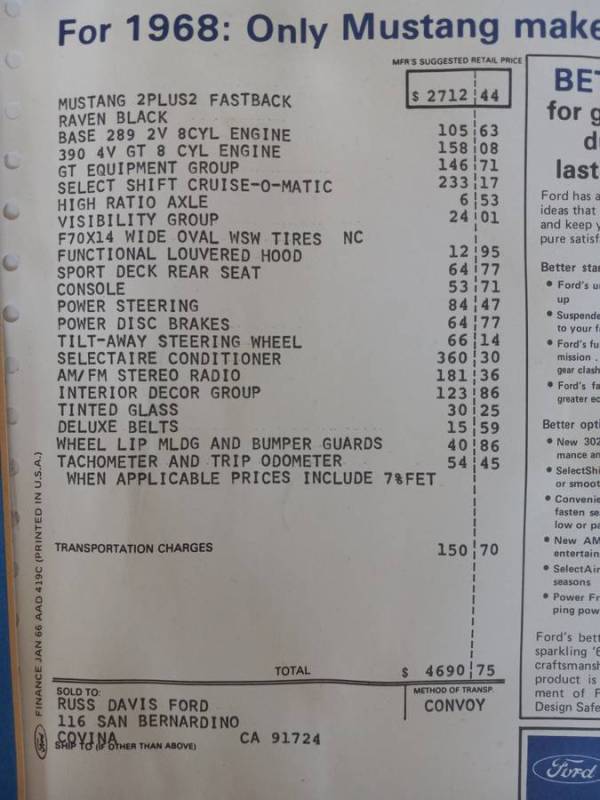 We were talking about options: this car is full of them, we can say that at the time of the order the first owner spared no expense and that (only for our tastes) the only drawback of this classic is the automatic gearbox; if it had had a manual gearbox it would have been the ultimate 1968 Mustang Fastaback but, even without it, it remains a one-of-a-kind. Find it forsale at $85,000 here in Corona, CA.