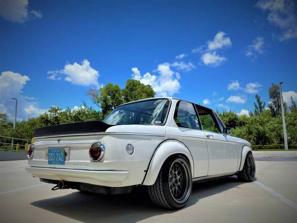 The 2002 Turbo is indeed an iconic car more because of its looks than its performance (although 170 hp in 1973 was a very important number). This particular car started out as a standard 2002, Euro spec, powered by a single carburetor and a much more “civilized” look than it does now.