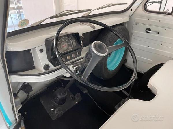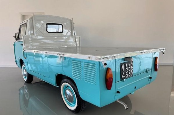 This bodywork was also built by the Coriasco workshops: the nose is a little reminiscent of that of the Multipla (and so does the general setting) but the wheelbase is longer: this has made it possible to obtain a loading surface (640 kgs) more suited to the intended use of this vehicle which, so far, is one of a kind. It has clearly been fully restored (we do not know if those you see are in the original colors) and still proudly bears the Coriasco badge and its “almost” original black number plates: they are from 1973. Find it for sale at €15,000 (today $17,000) here in San Miniato, Italy.