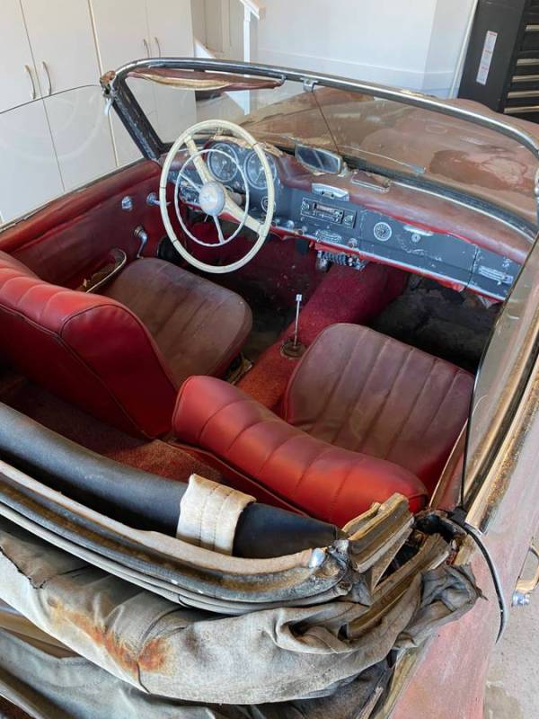 But the good thing is that the car is matcing numbers (so says the seller) and that it looks rather healthy: certainly the superficial rust, the old dull and worn paint layers are clearly visible but starting from a car substantially solid, it turns into savings: never be enticed by the low price, considering that you will be able to do the work at a reasonable cost; we assure you that you will have nasty surprises. Beyond that the car looks complete (with hardtop) and, for once, not taken apart. Find it for sale at $63,000 here in South Surrey, British Columbia.