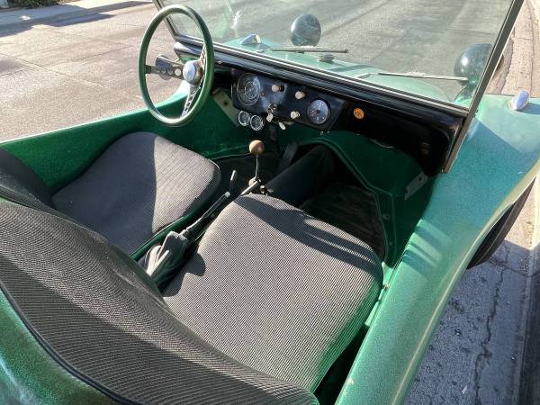 This car is not a Meyers Manx but one of those produced by a competitor company of the famous manufacturer of gealcoat bodies, Glitterbug. But the beauty of this car is that it appears to be a real time capsule.