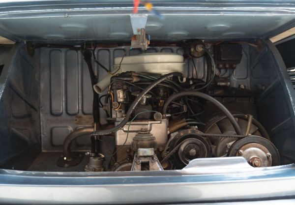The car is obviously restored and looks in pristine condition: it is painted in a pleasant shade of light blue (looks a lot like the Silver Blue used on the Jaguar E-Types) while the interior is black with a beige wool carpet. The engine compartment also seems consistent with the rest of the car on which it is difficult to object. Find it for sale at €80,000 (today $77,900) here in Reggio Emilia, Italy.