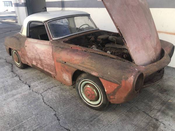 However, under that layer of rust that you see there is still a 190 SL which, according to the seller, has matching numbers and also has a hard top, an uncommon and very expensive accessory, both at the time and today, if can you find it on the market.