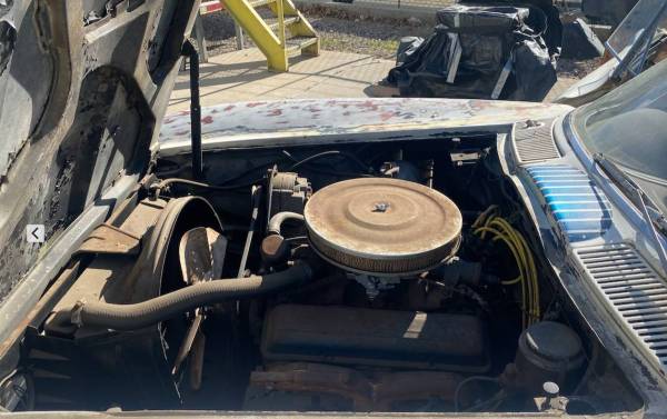 And then: “That being said we looked high and low and found no numbers to ID the car , No VIN tag , No replacement tag , No Data Plate. Nothing , the engine numbers seem to indicate “F0921RB” which decodes as 62, 63 , 64 Impala 300hp 327. The transmission doesn’t have the build tag but case numbers “P0623″ seem to lead to a 64, 65 Muncie M20 / M21. Moving right along the instrument cluster appears to be a 1963 , the rear brakes are drum , 66 should have had rear disc.The rear disc delete option only available in 65. I was told all frames 65 and up had a cutout in the front crossmember to clear a big block crank pulley / balancer.This doesn’t have that .”