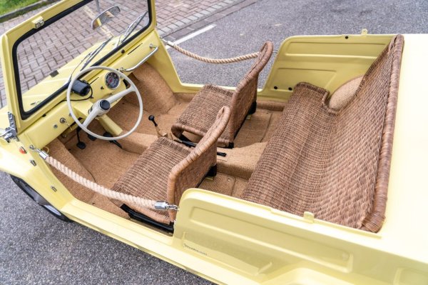 The car in question is a fantastic and very rare Fiat 500F transformed into a “Spiaggina”, i.e. part of that vein born at the end of the 50s in which Italy, in full economic boom, also became a tourist destination for VIPs from all over the world. world. Many of them, in addition to the yacht with which they arrived in Italian ports, also wanted an agile and light vehicle to move around on land, and this vehicle obviously could not be common: Ghia began to produce vehicles of this type, full open and with an interior made of wicker woven by skilled craftsmen, after which others joined the game such as, in this case, Savio.