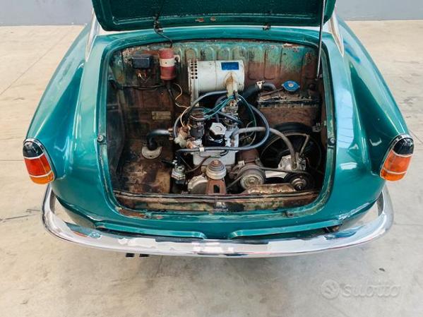The seller says the interior is original (we believe it) and probably the exterior is as well: there are some small rust spots along the trim that runs along the side, but that’s pretty normal for a car of this type. age, never fully restored. The engine compartment is the part that looks the most original, not only due to the look of the sheet metal but also due to the engine components. Find it for sale at €38,000 (today $42,000) here in Forlì, Italy.