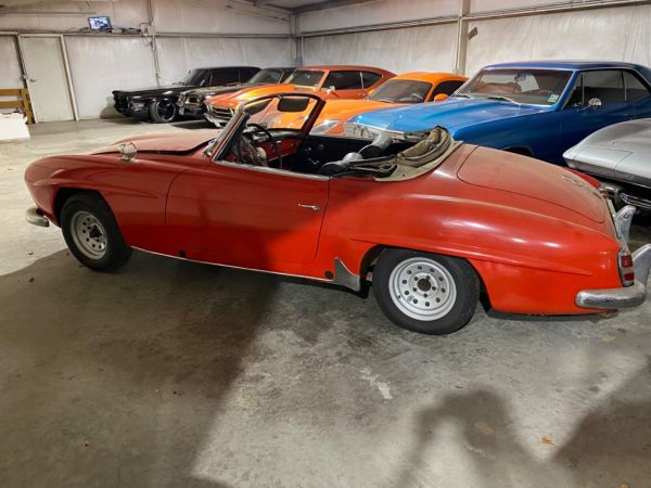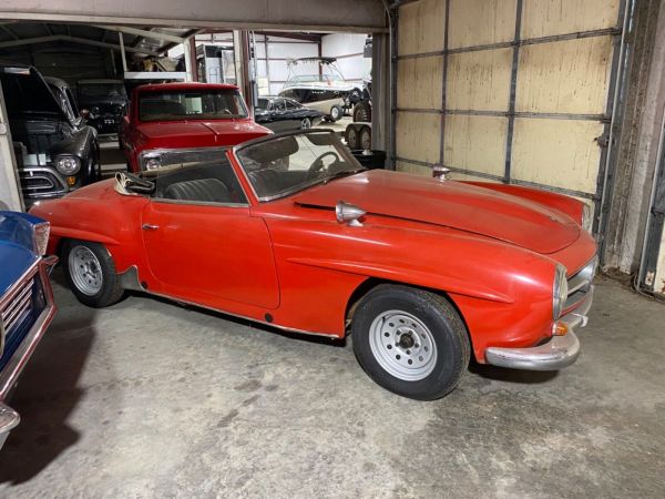 The seller of this red Mercedes Benz 190 SL says that it has been a ‘shop barn find’ and, based on the evidence found, it has been parked since 1981.
