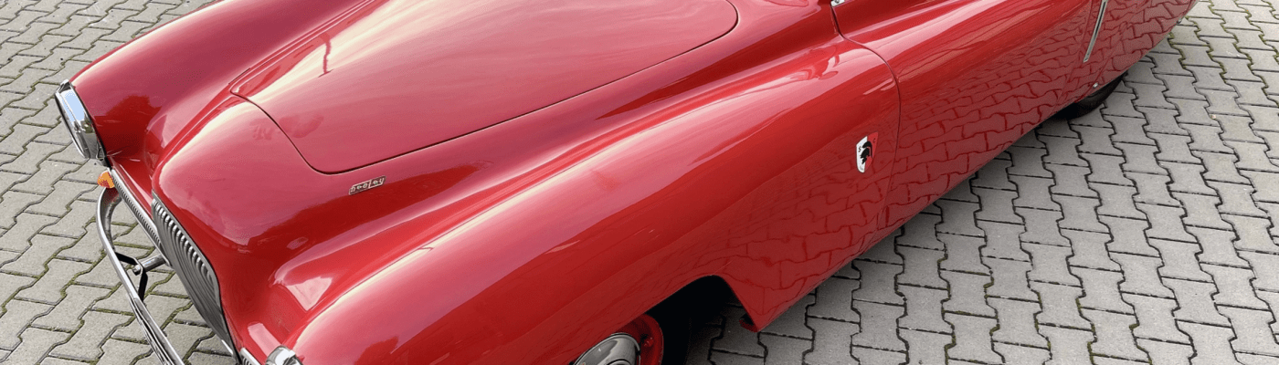 The seller says that only 12 of these cars were made, and 4 or 5 survive today: we do not have reliable sources, but it is likely, considering the difficulty of finding one for sale. This specimen was restored in 2007-08 and still presents itself very well, especially in this eye-catching color, as well as the instrument cluster, which we find splendid. Find it for sale at £41,900 (today $53,000) here in Cologne, Germany.