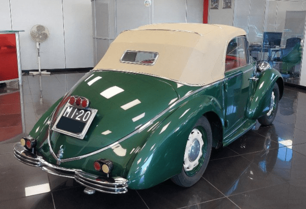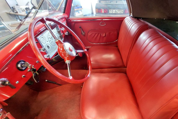 From the initial 1939 series, only 50 units, including coupés and spiders, were reported made. World War II halted production, which resumed in 1949 with the entirely different Amica 49. The car is one of the very first produced, crafted by Carrozzeria Mantelli in Torino under Bertone’s commission. This “pre-series” model is distinguished from later ones by a chrome molding encircling the front of the car. Around 2010, it underwent a meticulous, comprehensive restoration by its current owners, with several parts rebuilt from scratch over five years, now in exceptional mechanical and aesthetic condition. Currently, no other identical specimens are known to exist. Find it for sale at €76,000 (today $82,000) here in Vicolungo, Italy. Thanks again to Kyle for this tip!