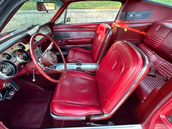 The body is said having never been in an accident and retaining all its original panels. Recently repainted in its original color, the car shines brilliantly with minimal bodywork needed. The factory deluxe interior of this Mustang is in excellent condition. The red seats are pristine, free from rips or tears, and the dash is crack-free. The door panels are solid, and both the carpet and headliner are in great shape. Optional features such as the overhead and floor consoles are intact and well-maintained, enhancing the car’s original charm. Last but not least, the chrome seems very nice. Find it for sale here in Clermont, FL, with bidding at $41,000 and reserve met.