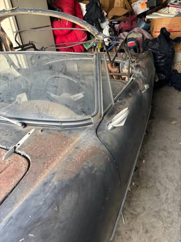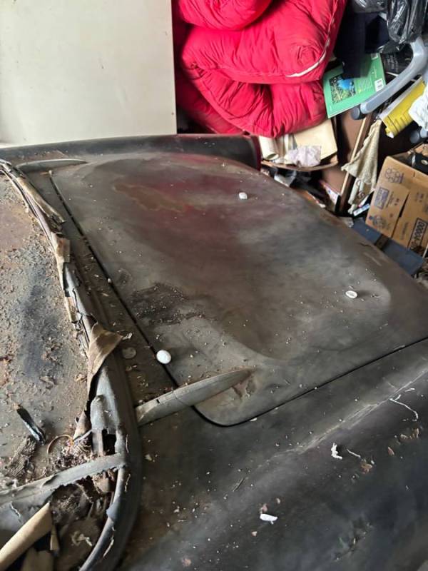 The seller states that the car does not have significant rust issues except for a two-inch hole in the passenger floor. The bodywork is definitely dented (there’s no hope for the trunk lid, which has been crushed, likely by a heavy object placed on it), the soft top is missing, but its frame is still there. Otherwise, the car seems complete and fairly original. Find it for sale at $15,000 o.b.o. here in Fontana, CA.