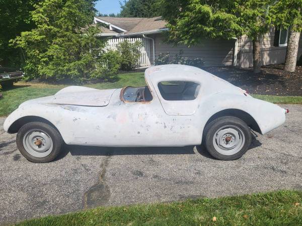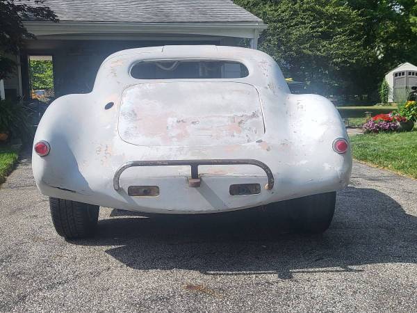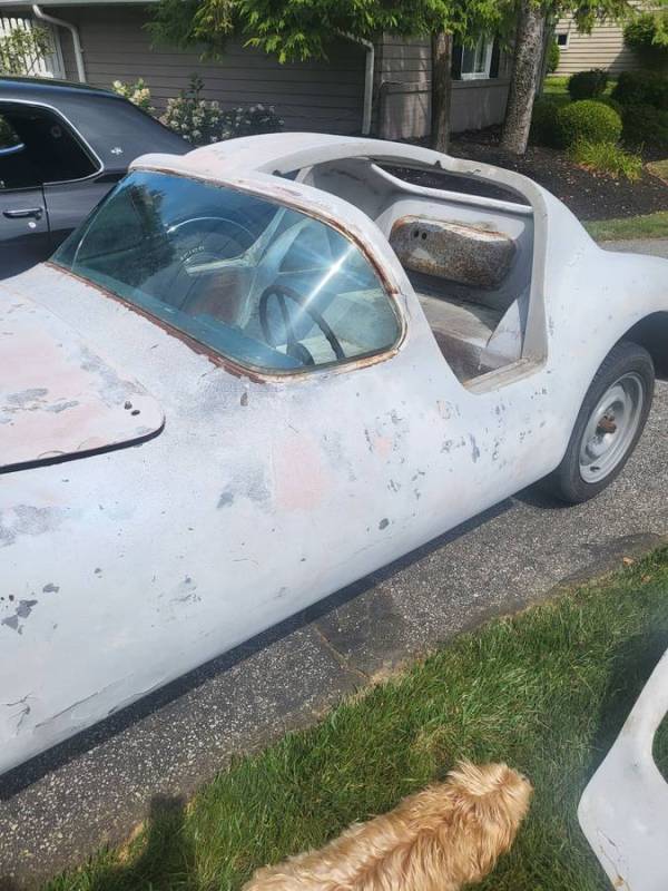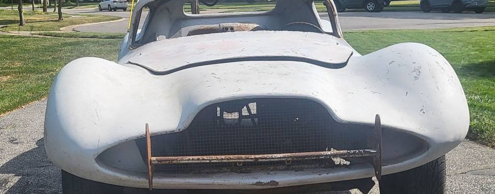The seller claims this is a Cheetah, a fiberglass car produced from ’63 to ’66 by Bill Thomas Cheetah with the intention of competing against the Shelby Cobra.