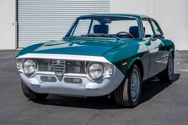 The car is finished in green and white with black leather upholstery from GTS Classics. The suspension has been rebuilt using the Alfaholics Fast Road Suspension Rebuild Package Stage 2. The braking system includes ATE front brakes sourced from a GTV, cross-drilled rotors, and steel-braided brake hoses. The car also comes with Alfaholics GTA Veloce-style wheels, a modified clutch assembly, and a billet steering-box case. The interior features GTS Classics Monte Carlo seats, replacement sun visors, and a carpet kit. The car is offered with service records, import documentation, removed bumpers and grille trim, and a clean California title. Find it for sale at $64,995 here in Laguna Beach, CA.