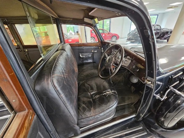 8-cylinder, 4-liter engine and advanced independent suspension: this Lancia was a marvel of engineering. The 4-liter displacement was an extraordinary feature, more than four times the average engine size of most cars sold in Italy back then, making it a vehicle for the very wealthy—often chauffeur-driven, as indicated by its leather front cabin for the driver and plush gray cloth interior for the passengers. It even included an electric call system to summon the chauffeur, further emphasizing its status.