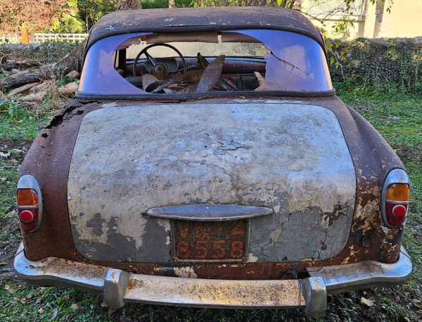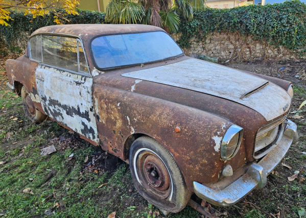 After changing hands a few times, this car was parked in a garage until 1975, after which it was left outdoors, sealing its unfortunate fate. What we see now is a car that requires reconstruction more than restoration. There’s no corner untouched by rust, which, in many places, has thinned the metal to the point of turning it into tissue paper. If we were to acquire this car, we would likely turn it into an art installation to represent the relentless passage of time that spares nothing and no one. However, perhaps someone might undertake the costly task of saving it, solely to gift the automotive world a rare gem. Find it for sale here in Arco, Italy, with bidding at €300 (today $330) and reserve not met. Thanks to Fluc for this tip!