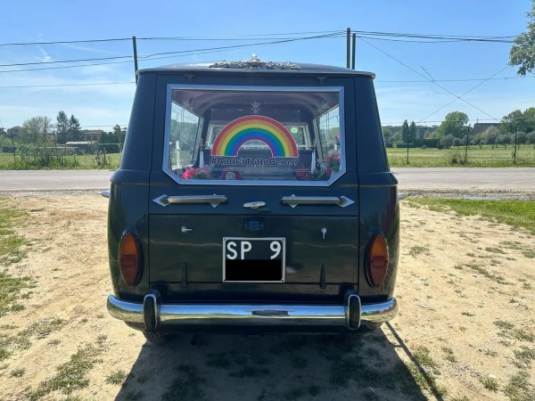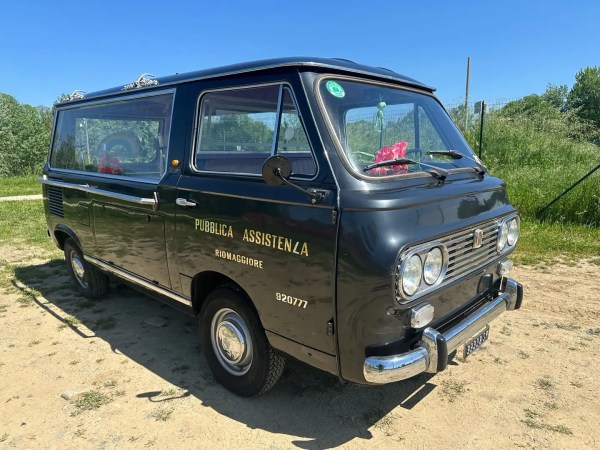 The vehicle described in this document is a Fiat 850 T hearse converted by Carrozzeria Grazia. It is equipped with a low-ratio gear system, as commonly found on hearses of this type. The odometer shows 19,000 kilometers, considered original. The vehicle remained in service until a few years ago in a small village located in the Cinque Terre region of Liguria. It retains its original black Italian license plate. Several mechanical maintenance operations have been performed to ensure operational reliability. Two years ago, the vehicle participated in a three-day rally, covering 750 kilometers across mountain passes without mechanical incidents, the seller says. Find it for sale at €15,000 (today $17,000) here in Firenze, Italy.