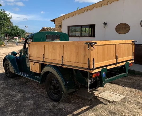 The example presented here has been carefully restored, reviving lines and details that have become increasingly rare to see on the road. The bodywork has been refinished in an elegant dark green with red inserts on the front grille, enhancing its vintage character and the imposing look of its nose. The rear loading area has been rebuilt with brand-new chestnut wood panels, staying faithful to the spirit of the vehicle while adding a handcrafted touch that makes it perfect for display purposes or promotional use.