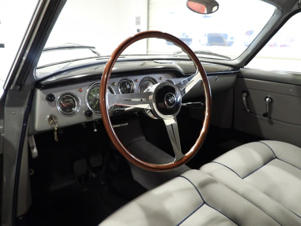 The seller further declares that the restoration was carried out to the highest standards by artisans specializing in Alfa Romeo vehicles, with bodywork, chassis, and mechanics fully renewed. The interior is trimmed in grey wool cloth with blue vinyl piping, with a blue vinyl rear bench and grey carpeting edged in blue. An original Alfa Romeo/Nardi wood-rimmed steering wheel and polished aluminum Borrani wire wheels with knock-offs complete the specification. Power comes from the Alfa Romeo twin-cam four-cylinder in Sprint specification, a hallmark of the brand’s postwar sporting heritage. As emphasized by the seller, finding such a car today in this condition, with documented restoration and factory-correct details, is an exceptionally rare event. The 1900C Sprint Coupé Pininfarina remains a highly desirable proposition for serious Alfa Romeo collectors. Find it for sale at €255,000 (today $299,000) here in Grumello, Italy.