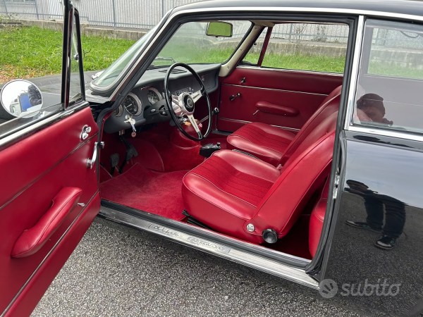 Introduced in 1963 and designed by Giorgetto Giugiaro for Bertone, the Sprint GT brought with it a clean and modern design language: sharp lines, a clean bonnet, a compact tail, and a bright, airy cabin. Most examples left the factory in classic colors such as white, blue, or Alfa red, while black, as seen on this particular car, is today rare and highly sought after. The contrast with the red fabric and vinyl interior further emphasizes its elegant yet sporty character, giving this coupé a discreet but distinctive presence.