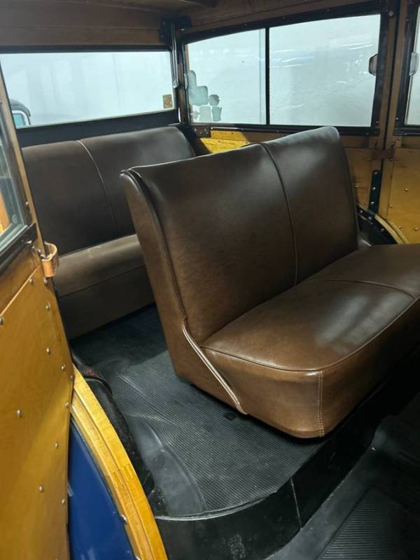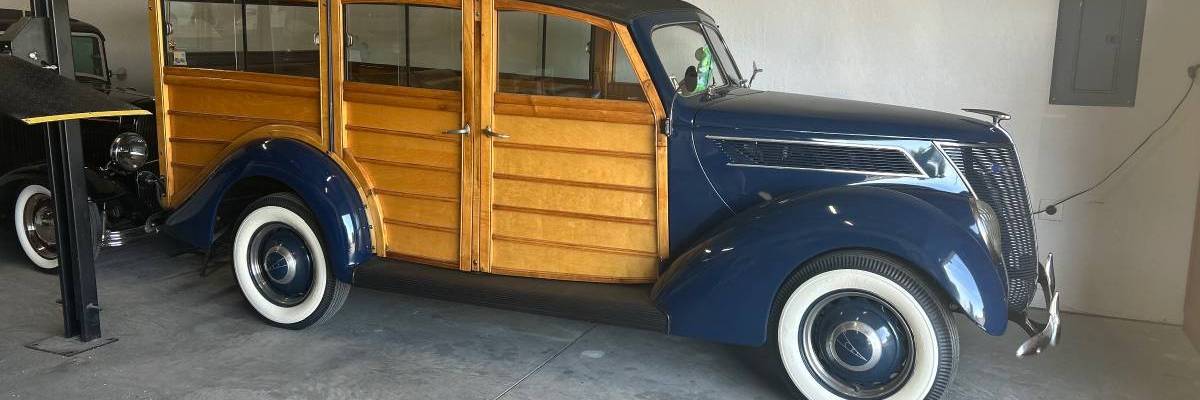 The 1937 model year is notable in Ford’s history because it marked the first full year in which station wagon bodies were constructed entirely at Ford’s Iron Mountain facility. Production for the 1937 Ford wagon is recorded at 9,304 units, a relatively low number compared to Ford’s standard sedans of the same year. Due to the natural degradation of wood over time, the survival rate of these prewar wood-bodied wagons is low, and original examples with intact wood panels and correct structural details are considered uncommon. The 1937 Ford lineup introduced several design features that also appear on this wagon. Among the most recognizable are the teardrop-shaped headlights integrated into the front fenders, a styling element unique to the 1937 model year. The front grille, with its V-shaped profile, and the one-piece hood also distinguish 1937 Fords from earlier and later versions. These features help confirm the period correctness of surviving vehicles.