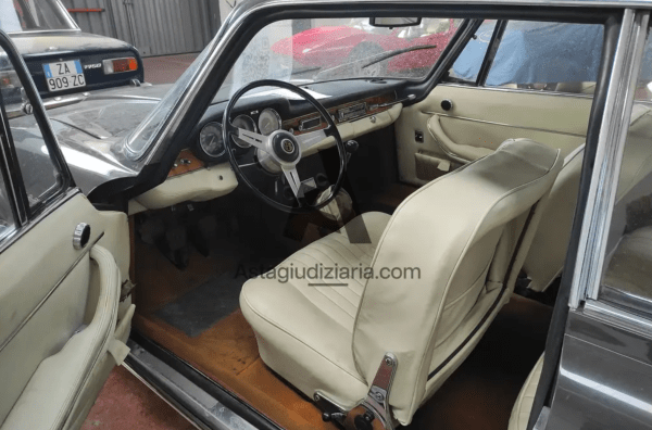 This judicial-auction listing concerns an Alfa Romeo 2600 Sprint (1966), Italian-registered in Rome. It is the Bertone-bodied coupe from the 2600 range, one of Alfa’s more mature 1960s grand tourers: elegant proportions, a proper long-distance layout, and the kind of cabin and detailing that still reads “serious GT” today. From the photos, the car presents correctly in terms of stance and trim, with a light-colored interior and the classic, restrained Sprint profile.