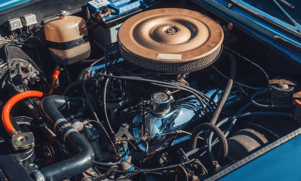 The car is described as being powered by a Ford 289 HiPo (4.7 liters) rated at 275 hp with solid lifters, paired with a four-speed manual gearbox—specs famously associated with the Shelby Cobra. On a short 2,400-mm wheelbase and a stated 1,450-kg curb weight, the recipe promises a responsive, usable GT rather than a pure showpiece. However, there is an important technical caveat worth spelling out: a close-up photo shows a “Ford Industrial Engine” identification plate, with a type code that includes “6001” (Ford’s basic part number for the engine assembly) and a prefix that appears consistent with Ford’s industrial-engine channels. That plate, on its own, is not evidence of a “HiPo” in the strict, collector sense—if anything, it is more consistent with an engine assembled and sold by Ford for industrial applications (generators, pumps, machinery), or a later crate/industrial replacement installed at some point. This does not automatically mean the engine is not a 289, nor does it rule out HiPo-style components, but it does mean the “289 HiPo” claim should be verified through block and head casting numbers and the specific K-code identifiers, rather than accepted purely on narrative.
