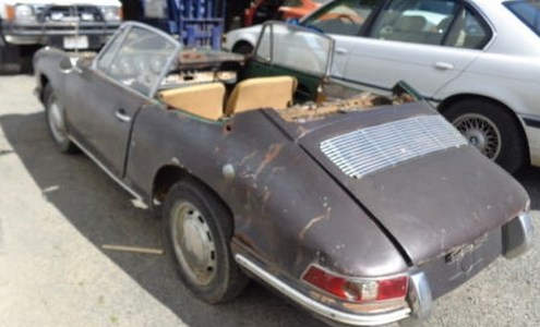Some Porsche metal here, which has almost the shape of an early 911. And, because you’re not used to see early 911 spider, there is a roof which can be detached from a 912, just in case… Apart from this “little” gap, the car has also few rust everywhere and a no-matching 2.0L engine which,… Read More One car plus one roof: 1966 Porsche 911