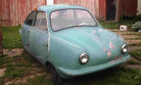 As Wikipedia says, Fuldamobil is the name of a series of small cars produced by Elektromaschinenbau Fulda GmbH of Fulda, Germany, and Nordwestdeutscher Fahrzeugbau (NWF) of Wilhelmshaven between 1950 and 1969. So now we know the big picture. Although Fuldamobil was German, it seems that this car in particular was built at the factory in… Read More Blue egg: 1957 Fuldamobil S-7